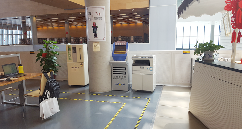 宝安图书馆新馆位于宝安中心区中央绿轴上,藏书量150万册(纸书120万册.电子书30万册),阅览席位2000个,一二三楼共设有近20台24小时自助借还书机,可满足读者随时随地阅读的需求。宝安图书馆采购读者证70万张,图书标签50万枚,层架标3万张,馆员工作站38台,自助借还机20台,办证机6台,安全门若干套。